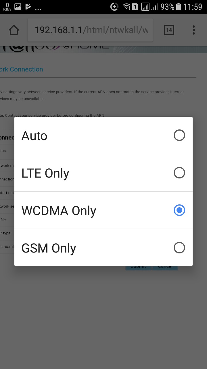Für 3G auf "WCDMA Only" schalten! LTE nur dann, wenn ihr tatsächlich über LTE verfügt, eine zweite 3G-Antenne am selben Mast angebracht und angeschlossen habt. Die Simkarte muß LTE-tauglich sein, sonst gibts kein Umschalten auf LTE-Standard!